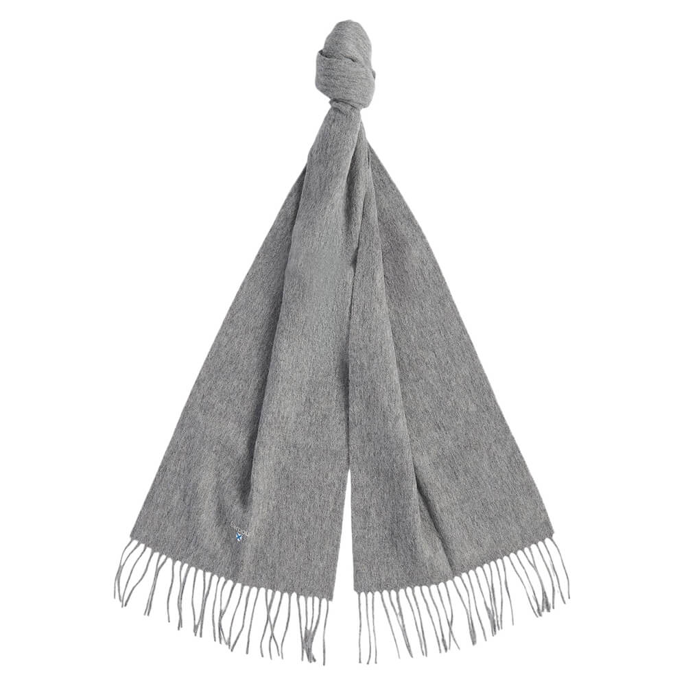 Crafted in sumptuously soft lambswool, this cosy scarf features a traditional tasselled edge and Barbour Shield embroidery.