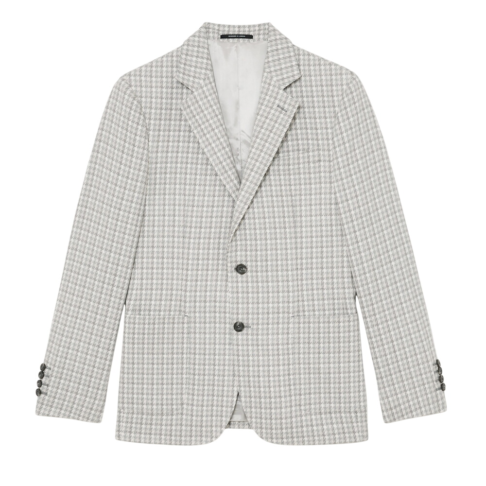 The Soft Grey Canty blazer is a tailored, single-breasted design in classic houndstooth. Fully lined, it’s finished with notch lapels, working cuffs, patch pockets and a two-button front.