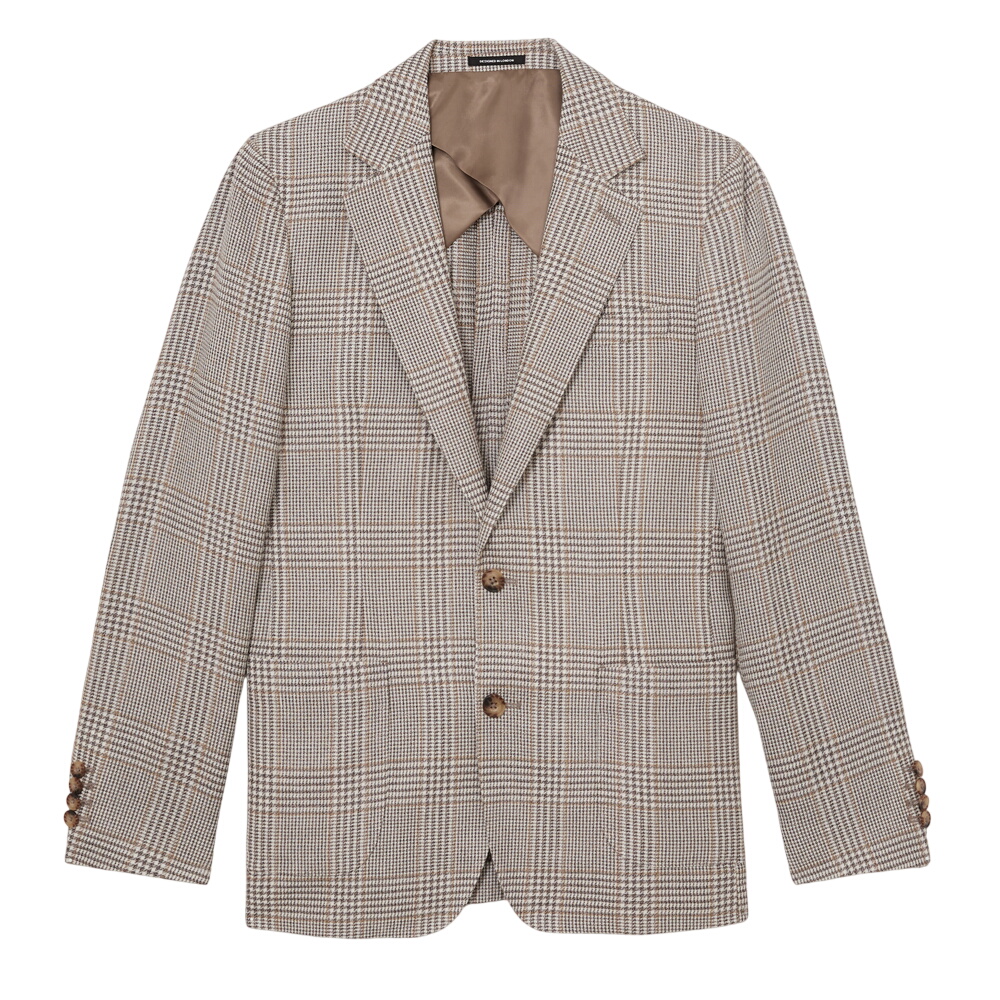 A timeless Prince of Wales check lends a heritage character to the Epsom blazer. Tailored in a linen-wool blend, it’s cut to a single-breasted silhouette with notch lapels, patch pockets, working button cuffs, and horn-effect buttons for a considered finish.