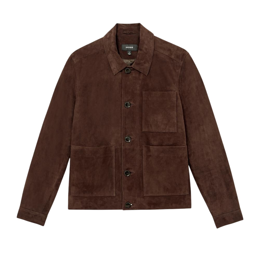 REISS Wilstead Suede Button-Through Trucker Jacket