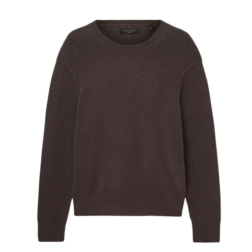 The AllSaints Storm Crew Knit features a classic crew neckline that provides a timeless look, making it versatile enough for both casual outings and more formal gatherings. Its fine gauge knit ensures a lightweight feel without compromising on warmth, making it perfect for layering during cooler months.
