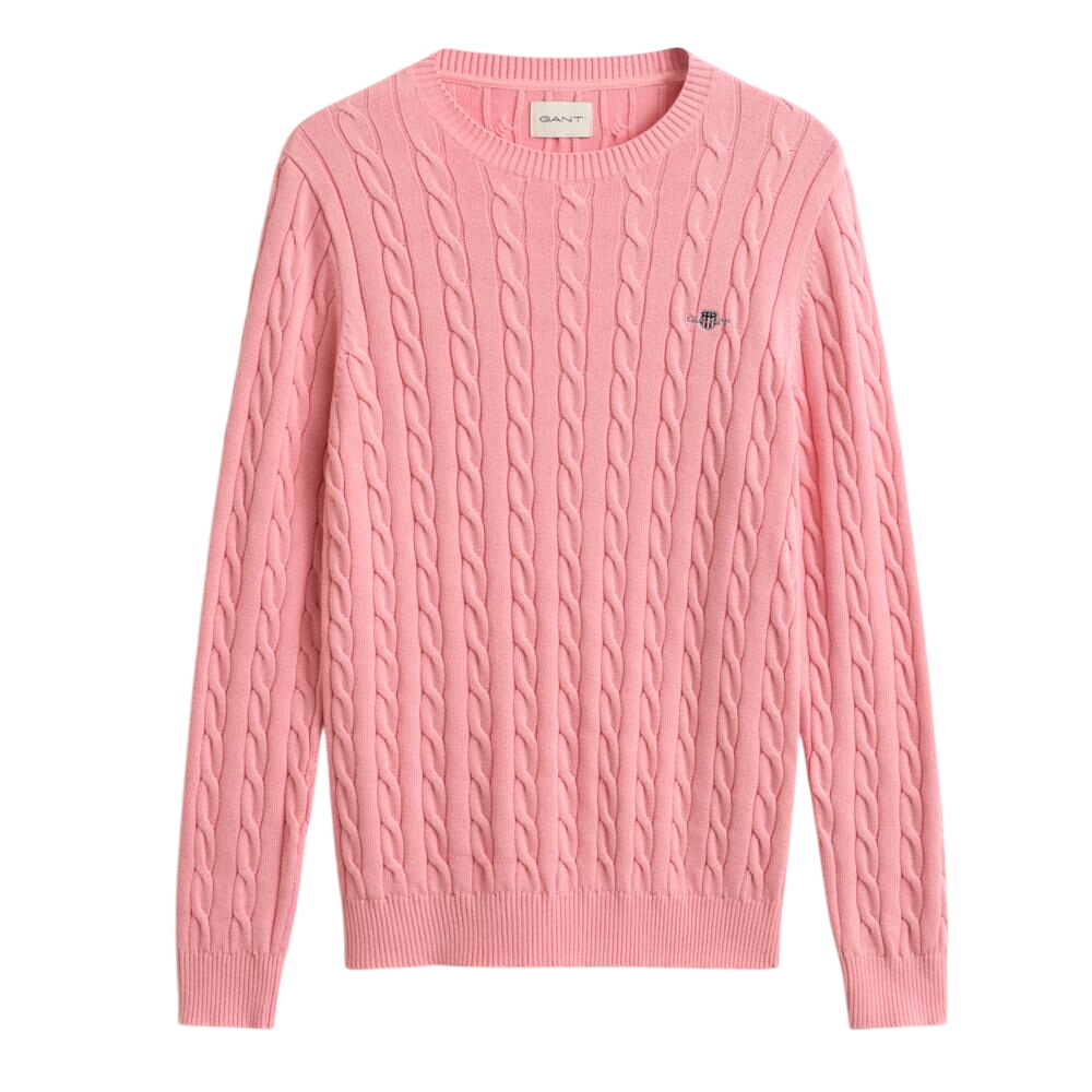 A preppy piece for any modern wardrobe, this Gant sweater is designed with traditional cable-knitting. Crafted from 100% cotton, it has a regular fit with a classic crew neck, ribbed detailing at the hem and cuffs, and a Gant shield graphic embroidered at the chest. Style with denim and tailoring.