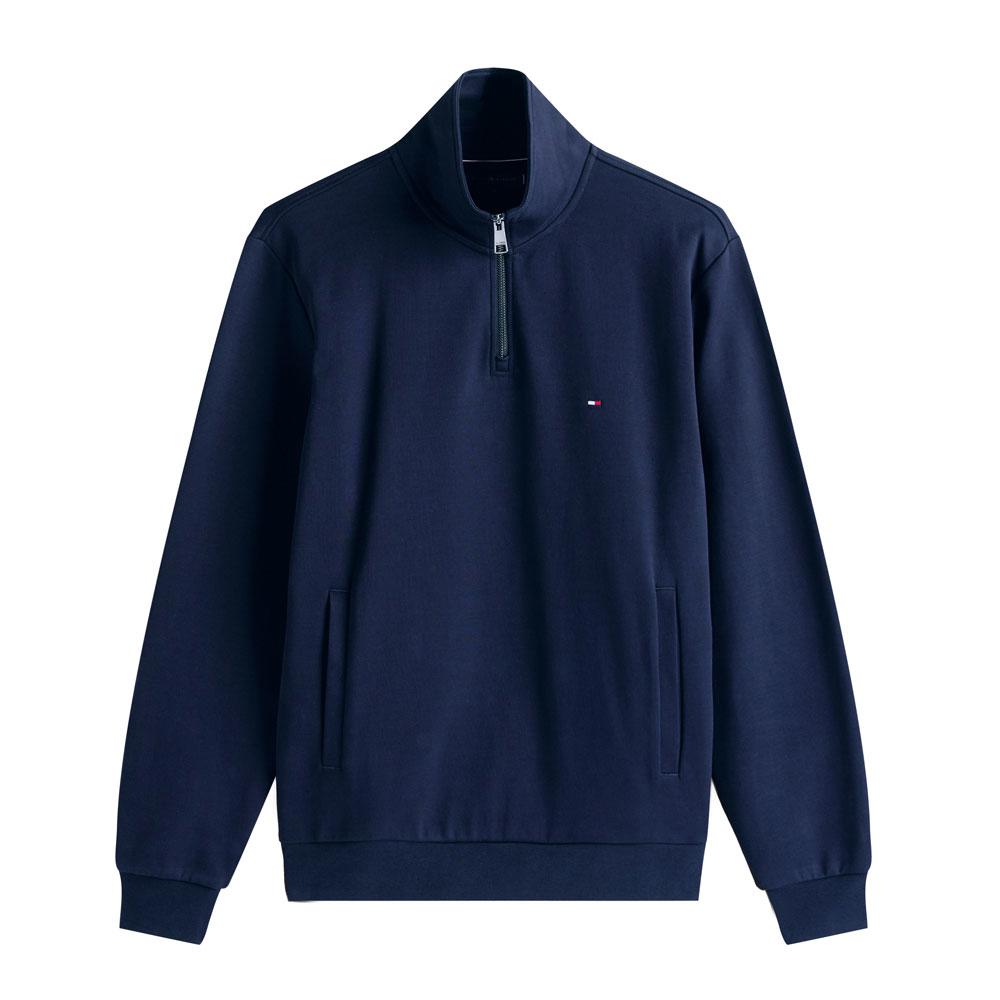The classic 1/4 zip design adds a touch of sophistication, allowing for easy layering and adjustable ventilation. Whether you're heading to the office or enjoying a weekend getaway, this piece complements any ensemble with its sleek silhouette and iconic Tommy Hilfiger branding subtly embroidered on the chest.