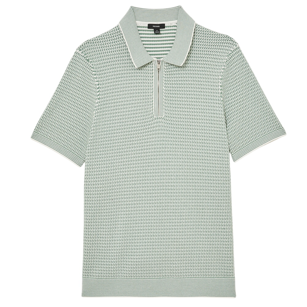 REISS Brink Soft Sage Green Textured-Knit Half-Zip Polo Shirt