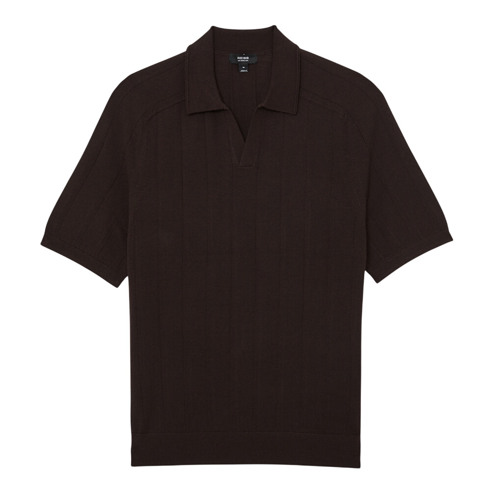 REISS Chelmsford Merino Wool Wide-Rib Polo Jumper