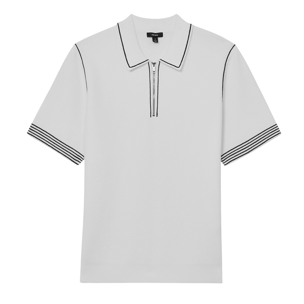REISS Mason Stitch-Detail Half-Zip Polo Shirt
