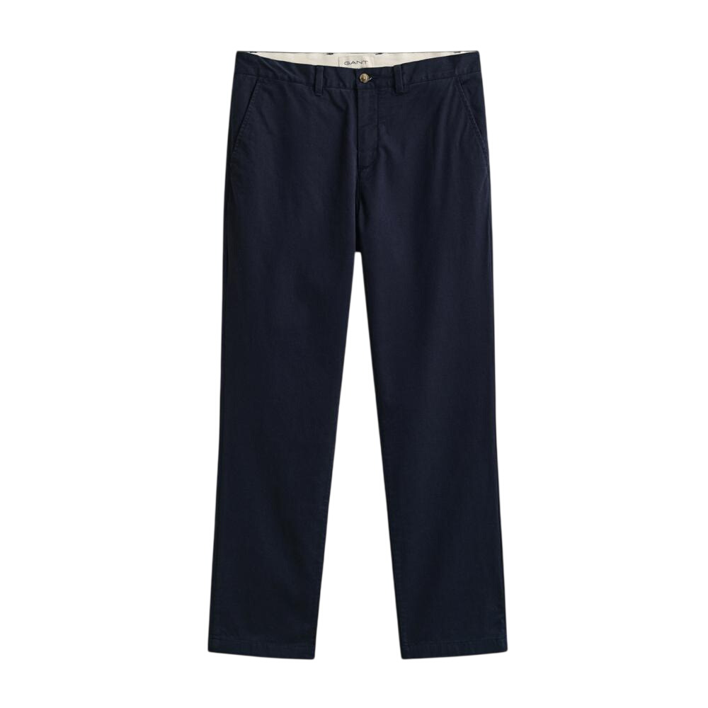 These chinos deliver a modern update to a preppy classic with a sleek, streamlined look. Crafted from organic cotton with added stretch, they feature a mid-rise waist and a regular fit from hip to leg. Details include a zip fly, belt loops, branded buttons, slanted front pockets, and buttoned welt pockets at the back. This style has a new and improved fit that’s true to size. We recommend selecting the size you normally buy from Gant, or check the size guide for more information. This product is made with organic cotton. Organic cotton reduces the environmental footprint and promotes safe work and better livelihoods.