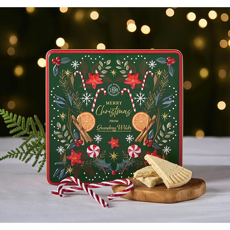 Grandma Wilds Embossed Christmas Candy Cane Tin 400g
