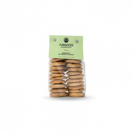 Rich, all butter biscuits from Italy in a handy gift bag. These amazing, crunchy artisanal biscuits are an ideal treat with a cup of tea or coffee.