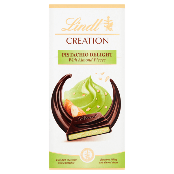 The Lindt CREATION Pistachio Delight dark chocolate bar is a perfect creation from our Master Chocolatiers: a