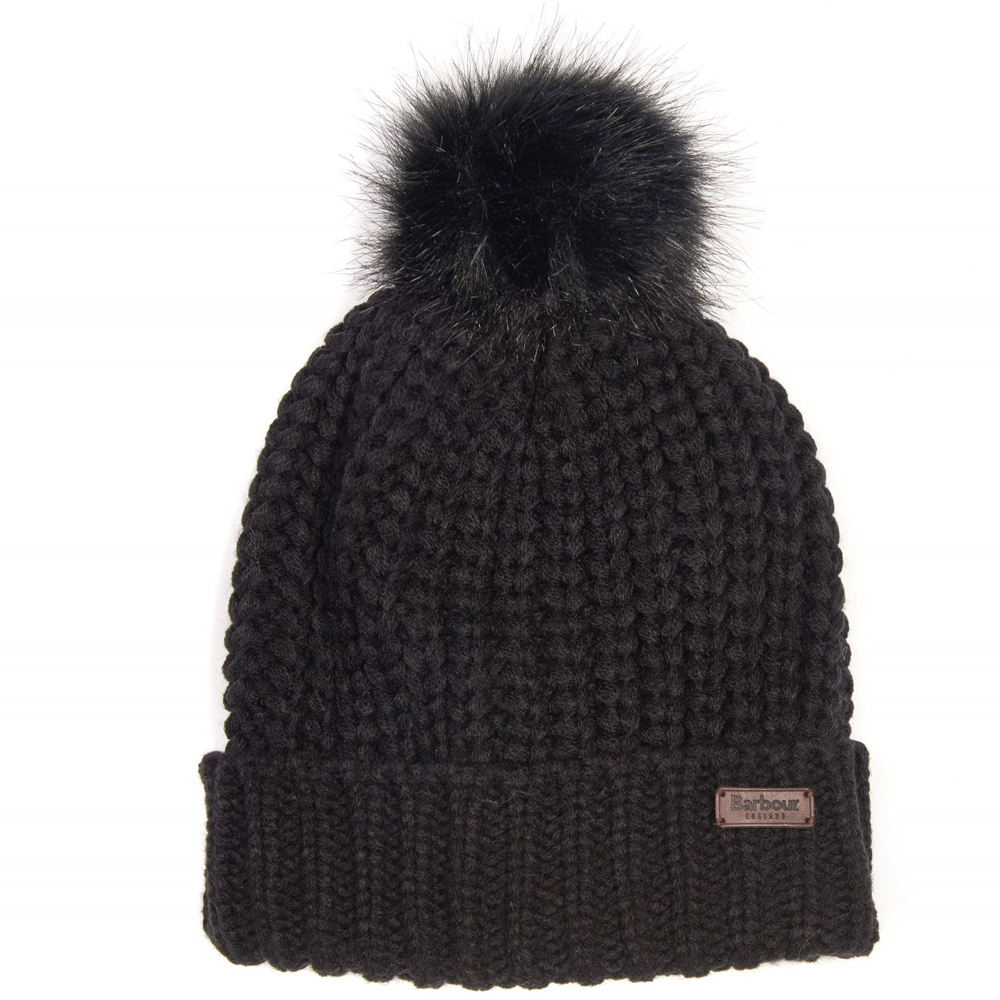 A perfect winter accessory, this chunky knitted beanie features a fashionable pom-pom and a turnback hem with an embossed leather badge.