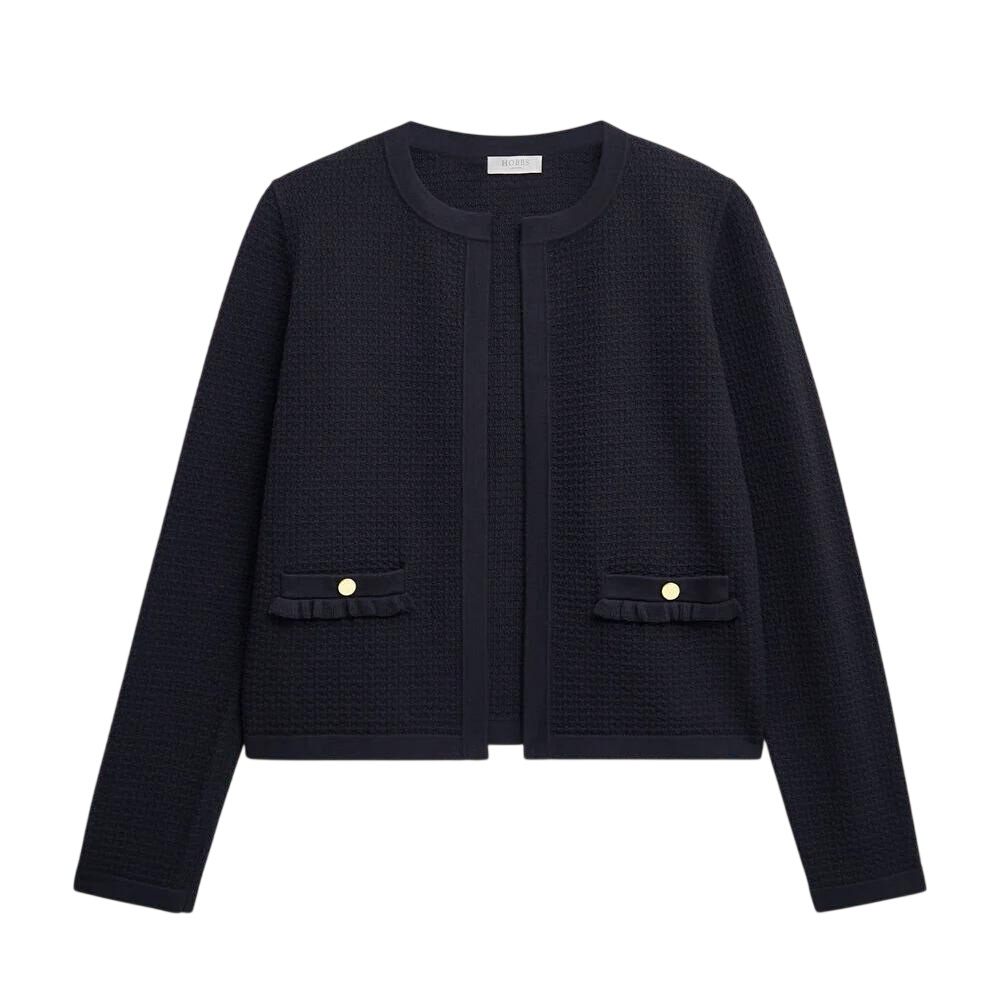 Introducing the Hobbs London Petra Knitted Jacket, where timeless elegance meets modern sophistication. This exquisite piece is designed for those who appreciate the finer details in life, offering a seamless blend of comfort and style that is perfect for any occasion.