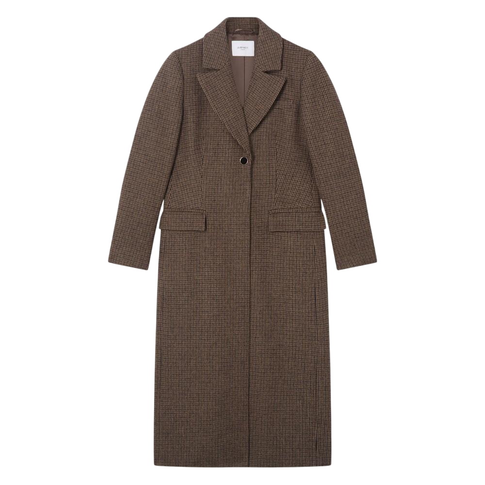 L.K. Bennett Dakota Brown Mini Check Single Breasted Coat