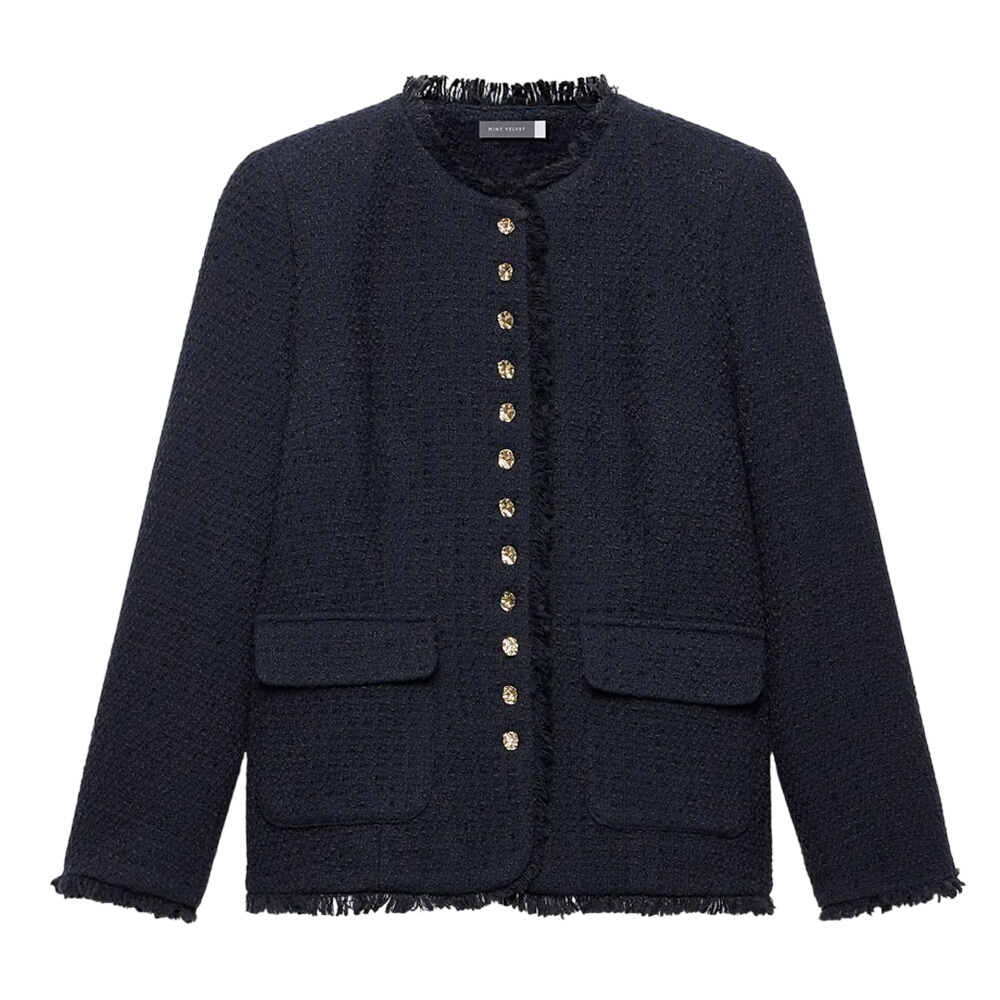 Mint Velvet Navy Boucle Tweed Jacket