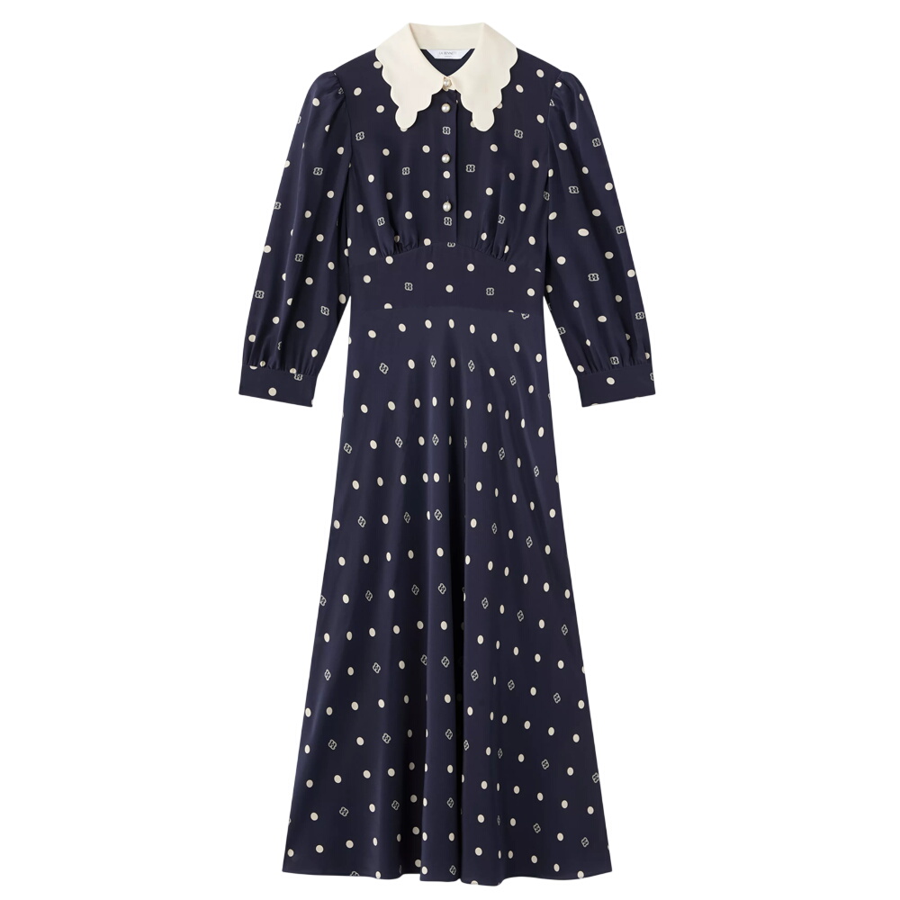 L.K. Bennett Enya Navy Scallop Collar Slik Dress