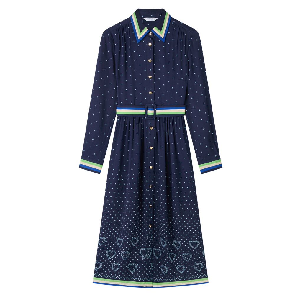 L.K. Bennett Kate Navy Multi Hearts And Card Shirt Dress