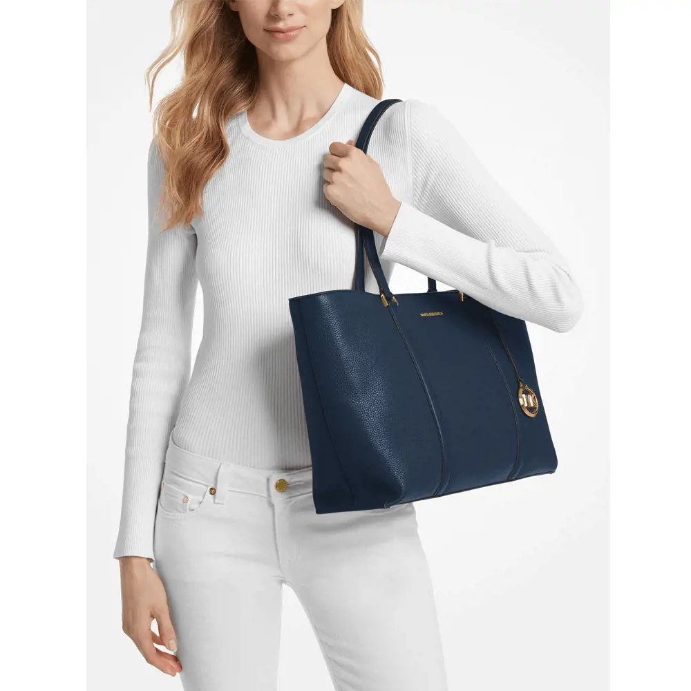 Perfect for every day, this classic design from Michael Michael Kors will become your to-go piece in the mornings. Crafted with soft leather, this tote has one main compartment which fastens with a zip, just inside there are two useful slip pockets ideal for anything you need quick access to. Finished with gold letting and a logo charm, this style is timeless.