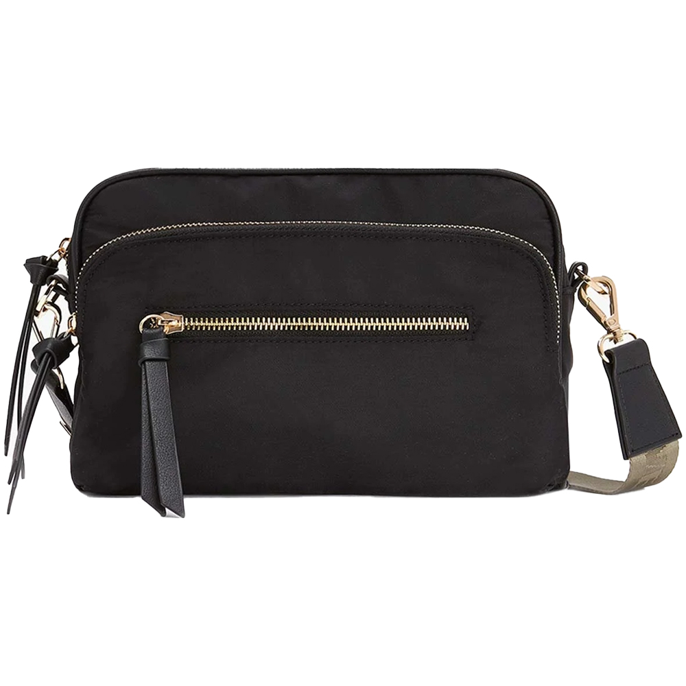 Crafted from on-trend nylon fabric for lightness, this black bag is designed in a compact shape with a main zipped compartment and two other zipped pockets for all your essentials. It's fitted with an adjustable, khaki cross-body strap, ready for exploring the city.
