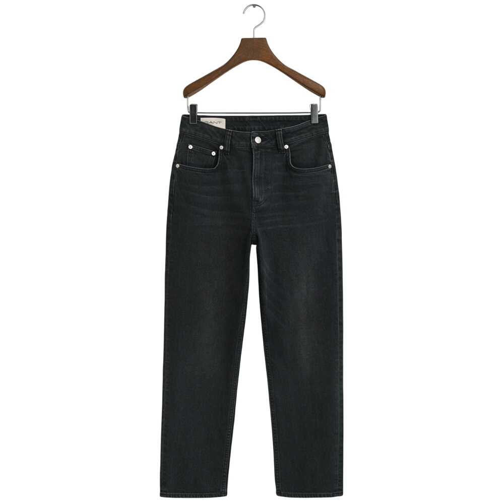 These GANT jeans, crafted from cotton with a touch of stretch, offer a regular fit that hugs the hips comfortably. Featuring a mid-rise waist and a cropped leg, they are detailed with branded buttons and rivets, a zip fly opening, and a branded leather patch on the back waistband.
