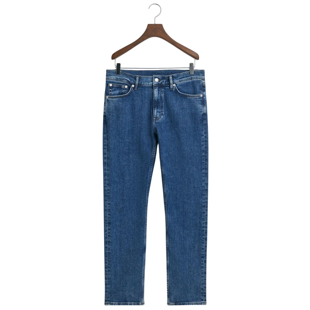 Featuring a clean indigo wash, these jeans are an ideal addition to any seasonal wardrobe. Designed for a regular fit, they have a mid-rise waist and a slight taper below the knee. With a classic 5-pocket style and zip fly front, these jeans are accented by branded shank buttons, rivets, and a leather logo patch on the back waistband.