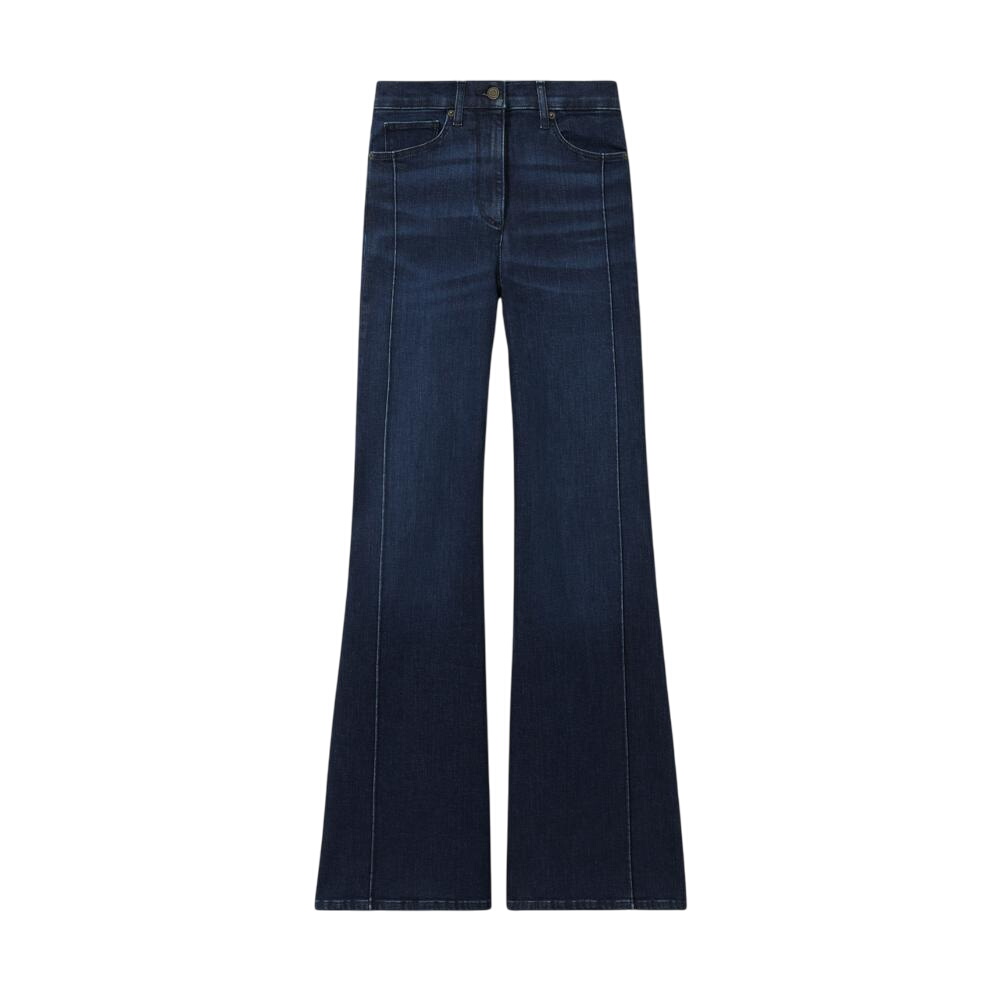 Crafted from a stretch cotton with a slightly more supple quality than traditional denim, the Dark Blue Heather jeans hug the hips and drape to a wide-cut leg. The high-rise pair is subtly elevated by raised front seams.