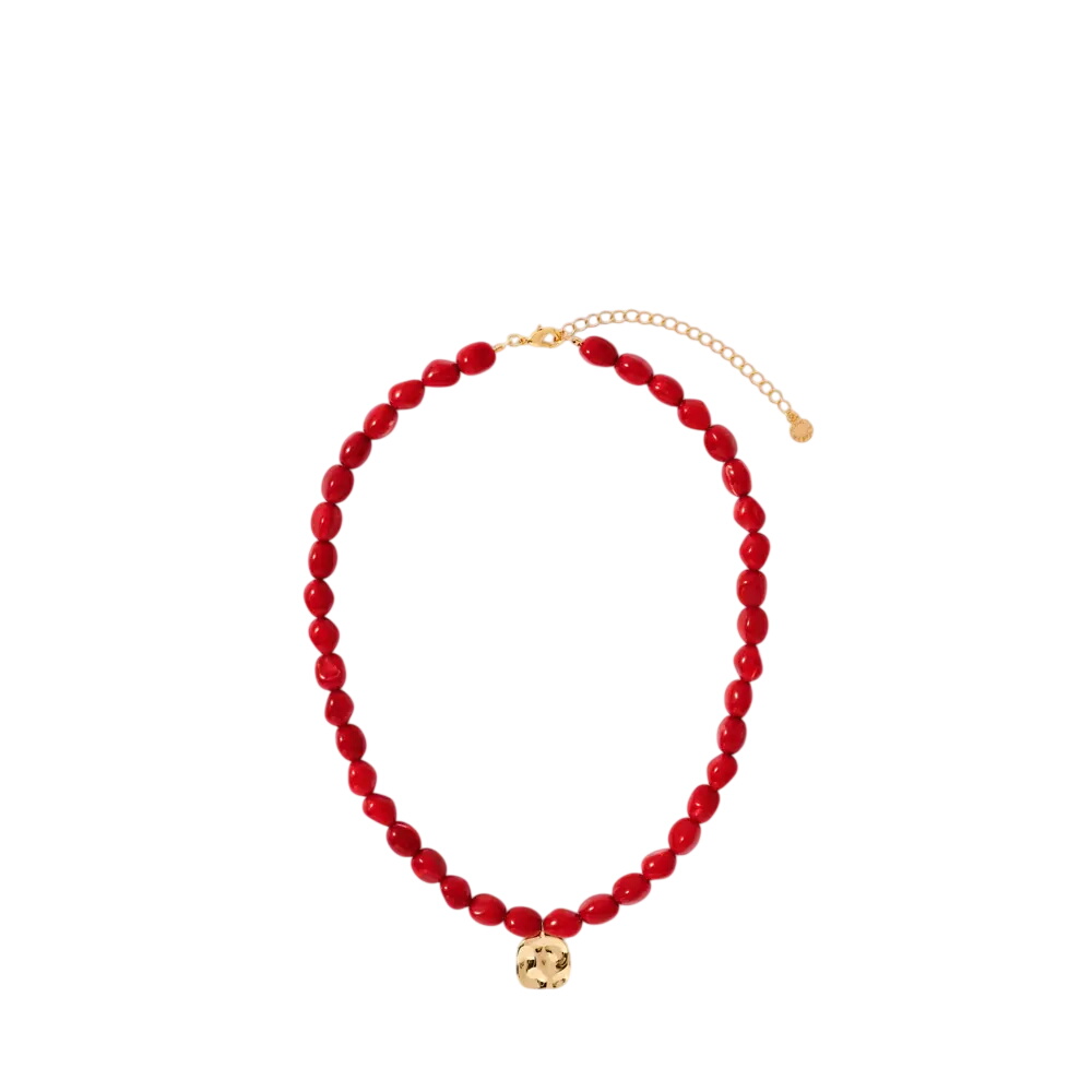 - Resin beaded necklace featuring a charm with an adjustable lobster clasp fastening.