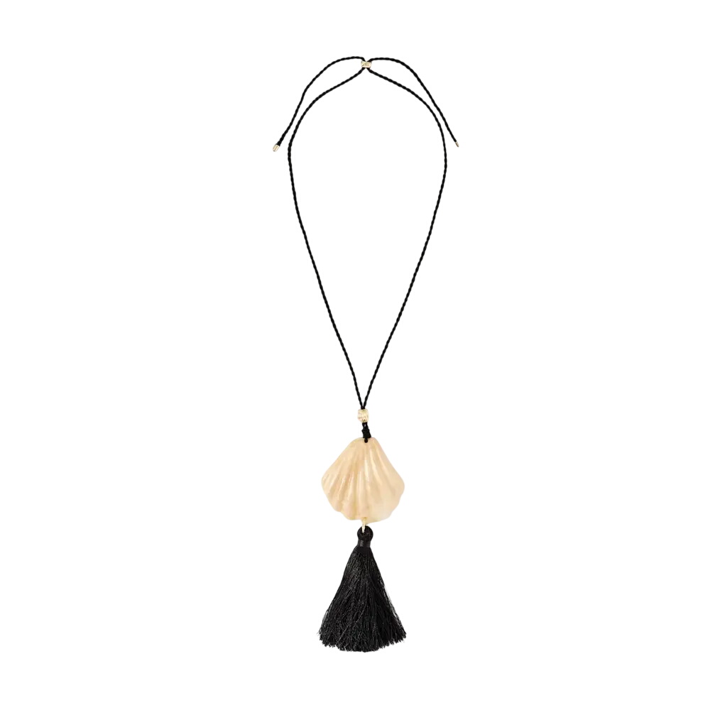 - Resin shell tassel pendant rope necklace with clasp fastening,