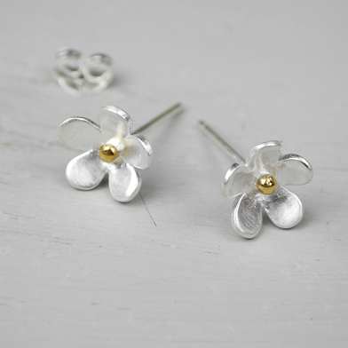 Hand crafted from sterling silver and featuring an matt finish and gold plated centre, these charming florally inspired earrings are the perfect finishing touch to any of your casual outfits this season.