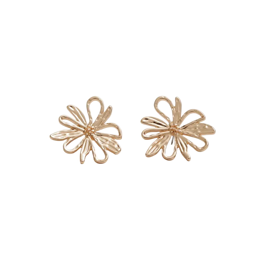 The perfect accessory for all your outfits. Designed to make an elegant statement, these gold flower stud earrings add the finishing touch to your everyday outfits as well as your event looks.