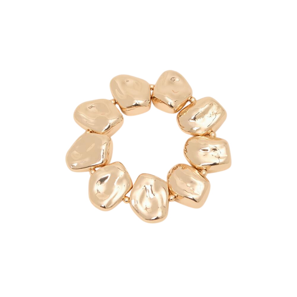Our gold chunky bracelet is perfect for adding a touch of statement to all your looks. Oversized irregular beads decorate this jewellery style that we love to pair with matching gold jewellery for evenings out and parties.