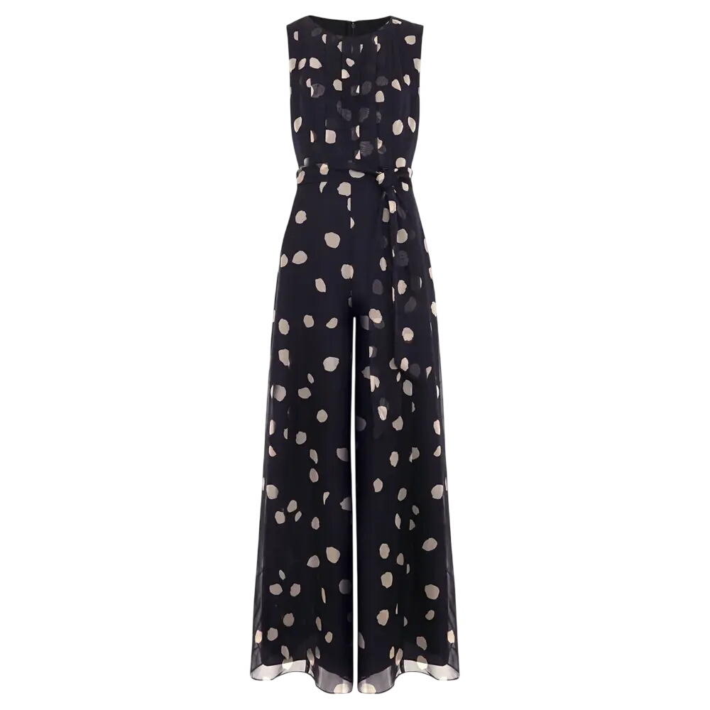 Polka dots are always on trend. Our bestselling Maxine wide-leg jumpsuit is now available in this timeless navy shade. Guaranteed to be your event-style favourite, key design details include: a beautiful chiffon overlay with a contemporary polka dot pattern, elegant pleating to the bodice and a matching tie belt to enhance the silhouette. This style is the epitome of modern, feminine style, just add heels and a clutch to finish the look.