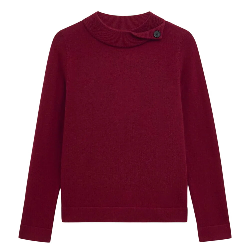 Hobbs London Talia Beryl Red Cashmere Blend Button Neck Jumper