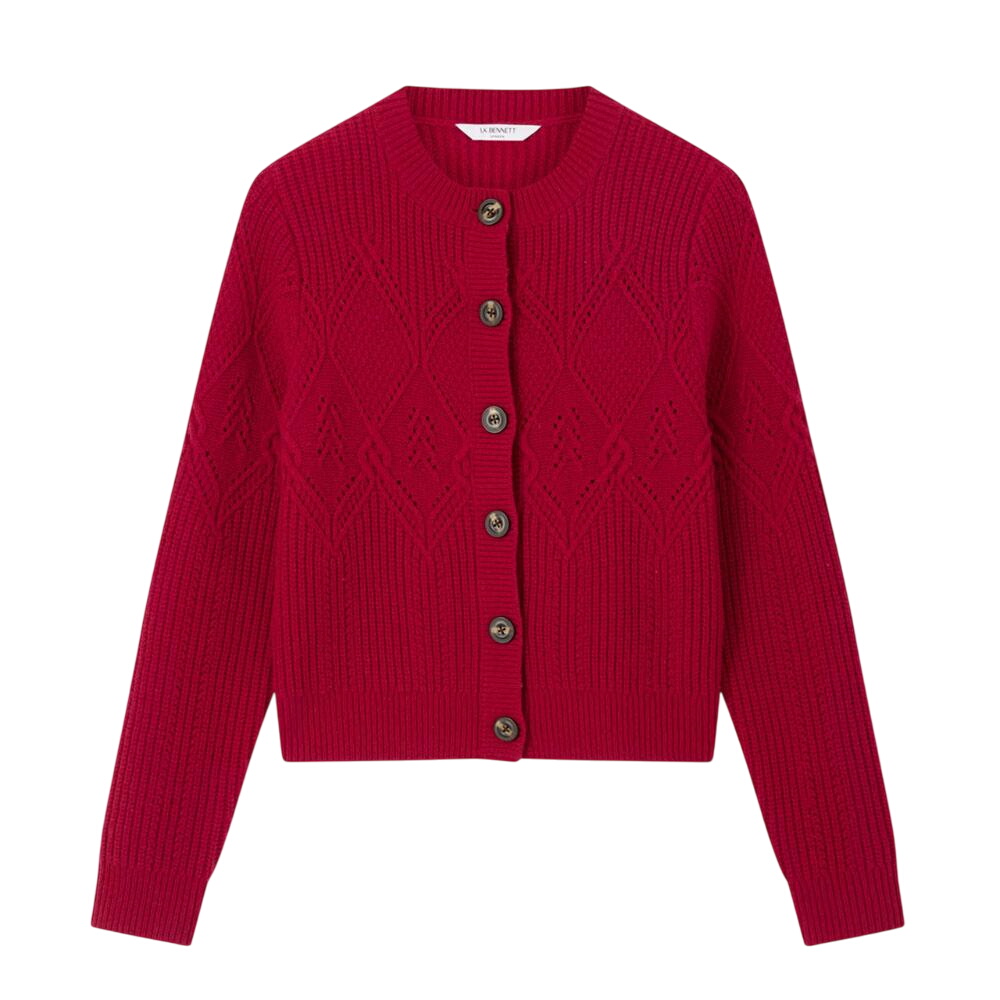 L.K. Bennett Orla Rio Red Diamond Pointelle Cardigan