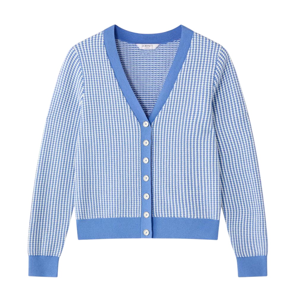 L.K. Bennett Vella Blue Cotton Stitch Detail Cardigan