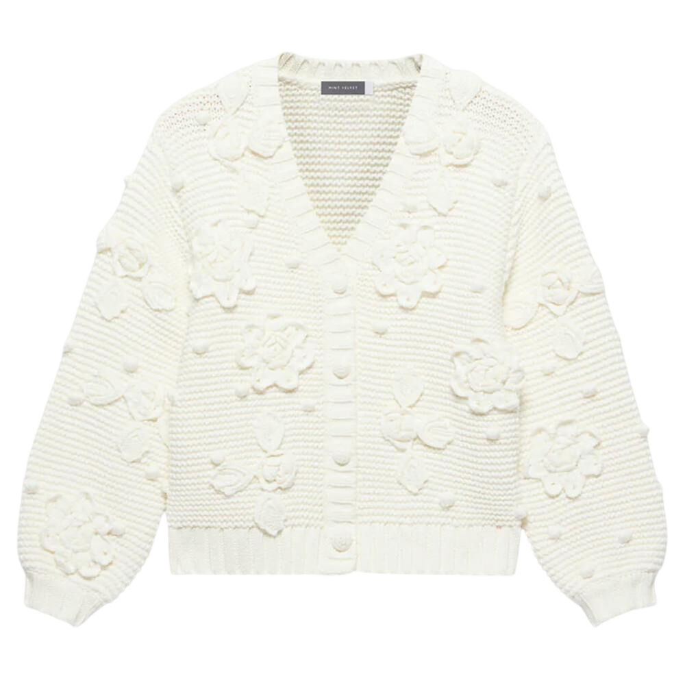 Mint Velvet Cream Applique Flower Cardigan