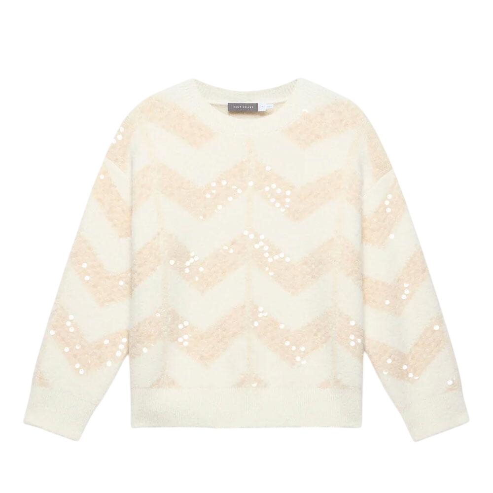 Mint Velvet Cream Zig Zag Sequin Jumper
