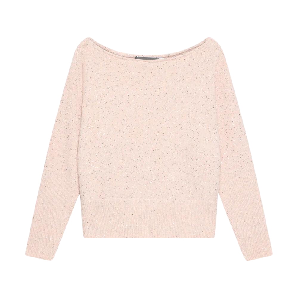 - Pale pink tone sequin jumper featuring a slash neckline and long batwing sleeves.