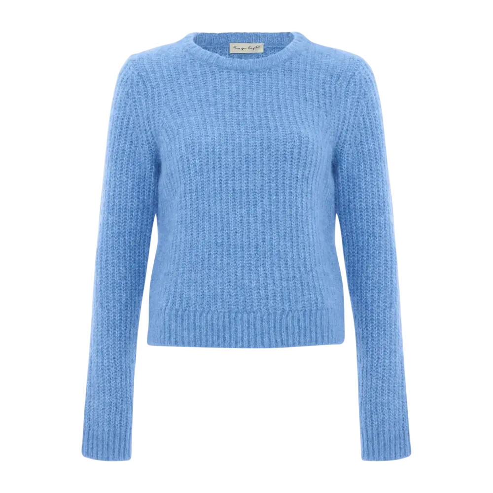 This blue knitted jumper will be a constant companion in the new season. The ribbed wool-blend creates a supersoft feel against the skin, perfect for colder days. Styled with your favourite denim or smart trousers it guarantees an elevated everyday look.