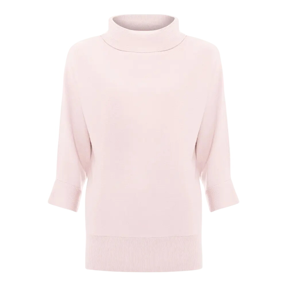 The staple jumper every wardrobe needs. Designed in a new pale pink shade, this jumper is cut to a relaxed fit with a funnel, roll over neckline and ¾ length sleeves. Style with trousers and boots for an elevated everyday look.