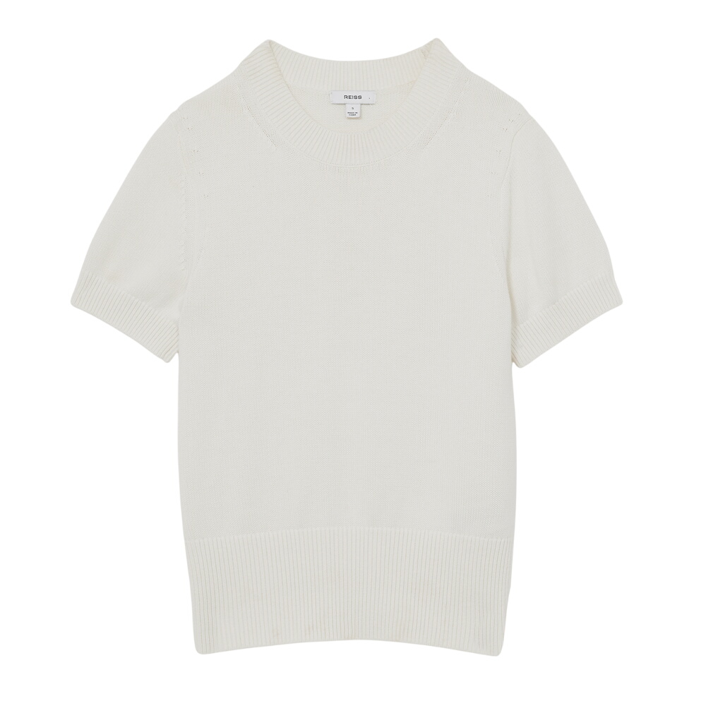 The Anita top is crafted from a soft cotton-wool blend, offering a cosy yet breathable feel. Its knitted design and ribbed trims add subtle texture, whilst the classic crew neckline neatly frames the face.