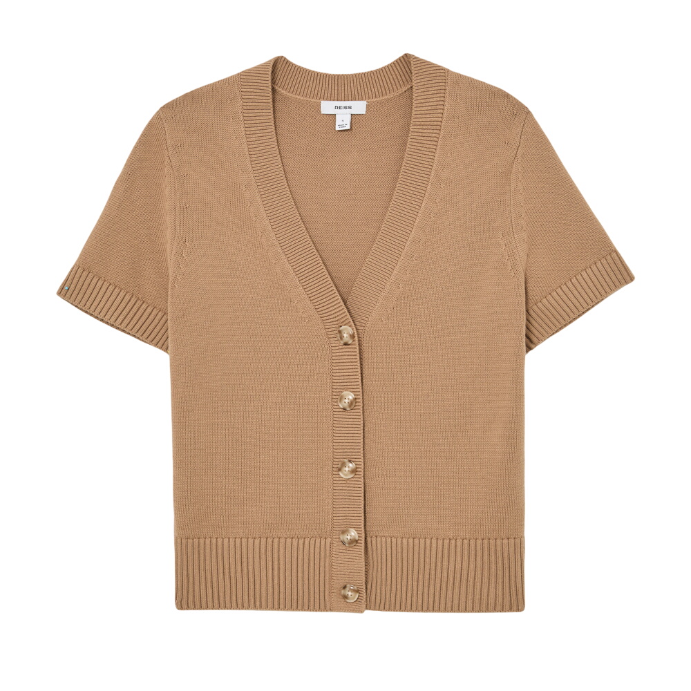 REISS Anya V-Neck Short-Sleeve Cardigan
