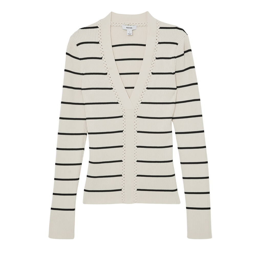 REISS Lauralee Stripe Craft-Stitch Rib-Knit Top