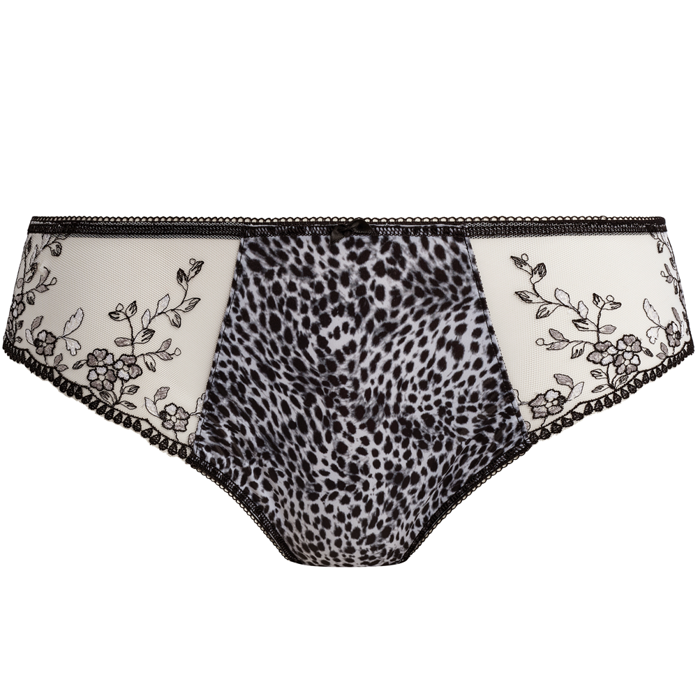 Indulge in everyday luxury with Fantasie's Lindsey Brief in a timeless Monochrome leopard print. Crafted from super soft fabric for all-day comfort, with elegant Austrian-designed floral embroidery adorning the front leg. Available in sizes XS-XXL.