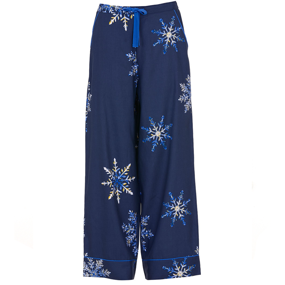 Indulge in the ultimate comfort and style with the Cyberjammies Snowflake Pyjama Trousers, perfect for those cozy nights in or lazy Sunday mornings. Crafted from a soft and breathable fabric blend, these pyjama trousers promise to keep you warm and snug, making them an essential addition to your loungewear collection.
