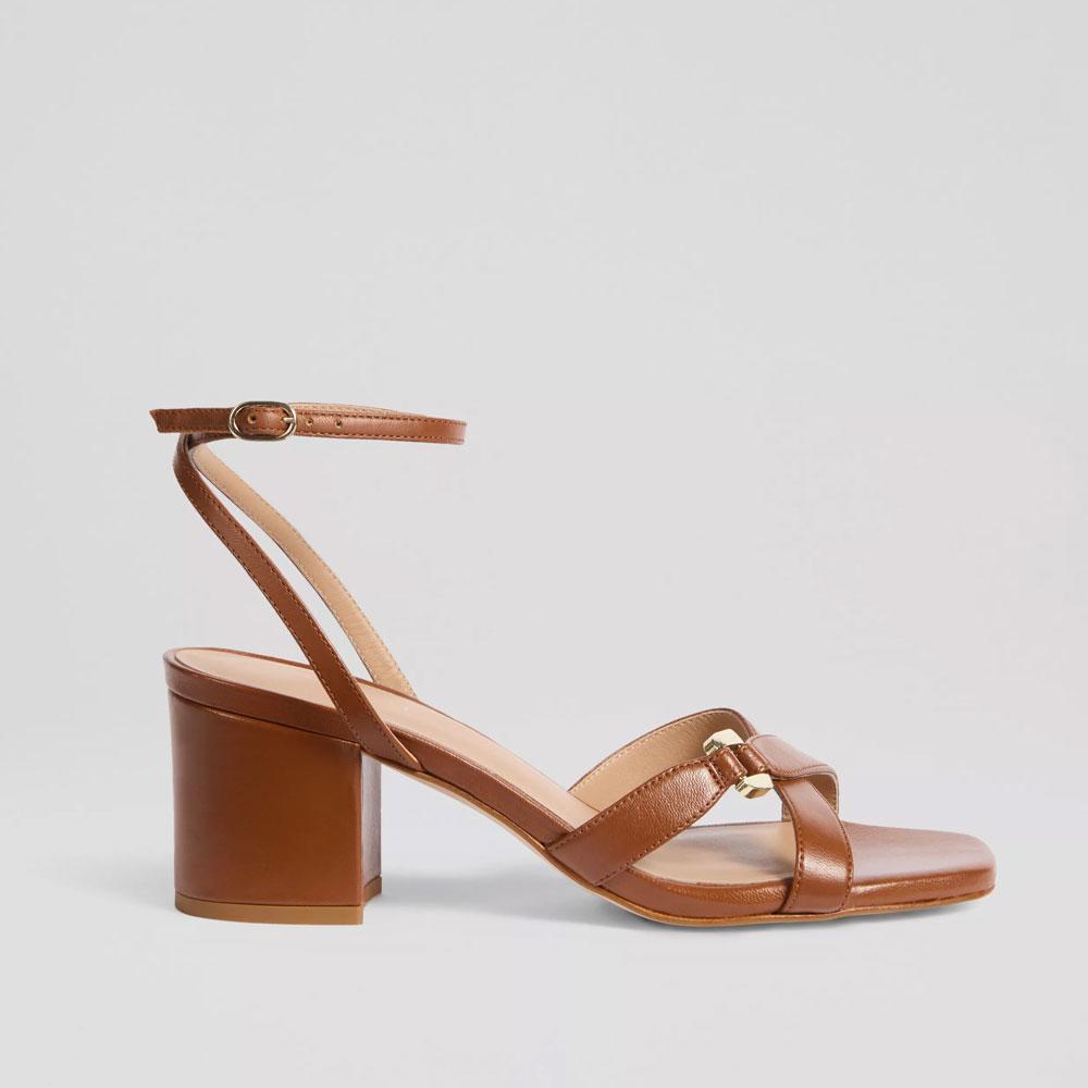 L.K. Bennett Ena Tan Leather Oloid Low Block Heel Sandals