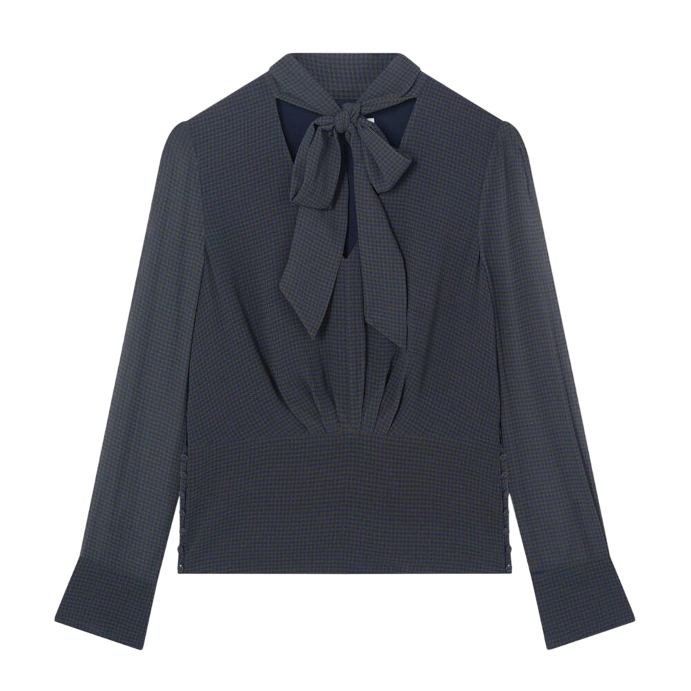 L.K. Bennett Rosie Midnight Houndstooth Print V Neck Blouse