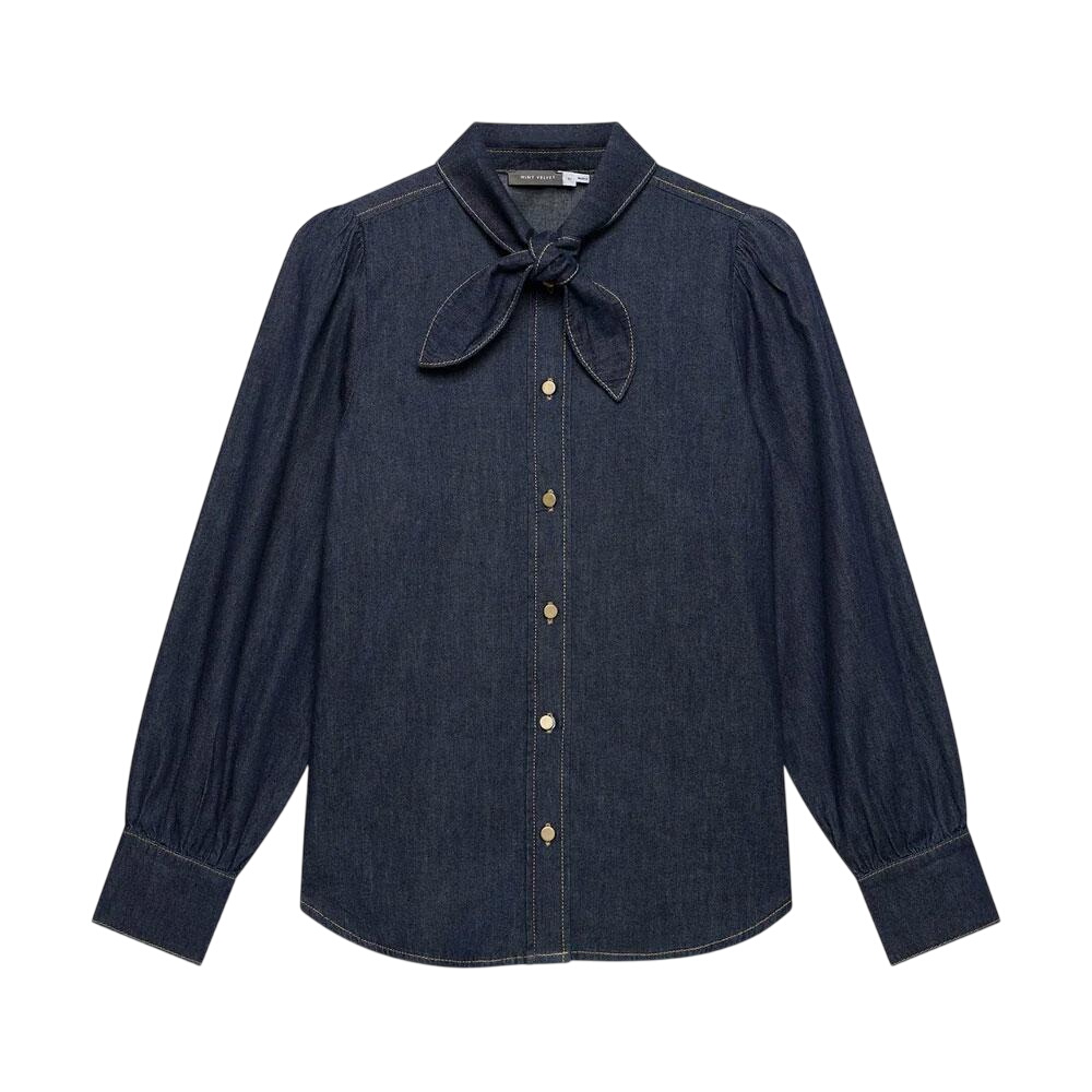 Mint Velvet Dark Indigo Tie Neck Denim Shirt