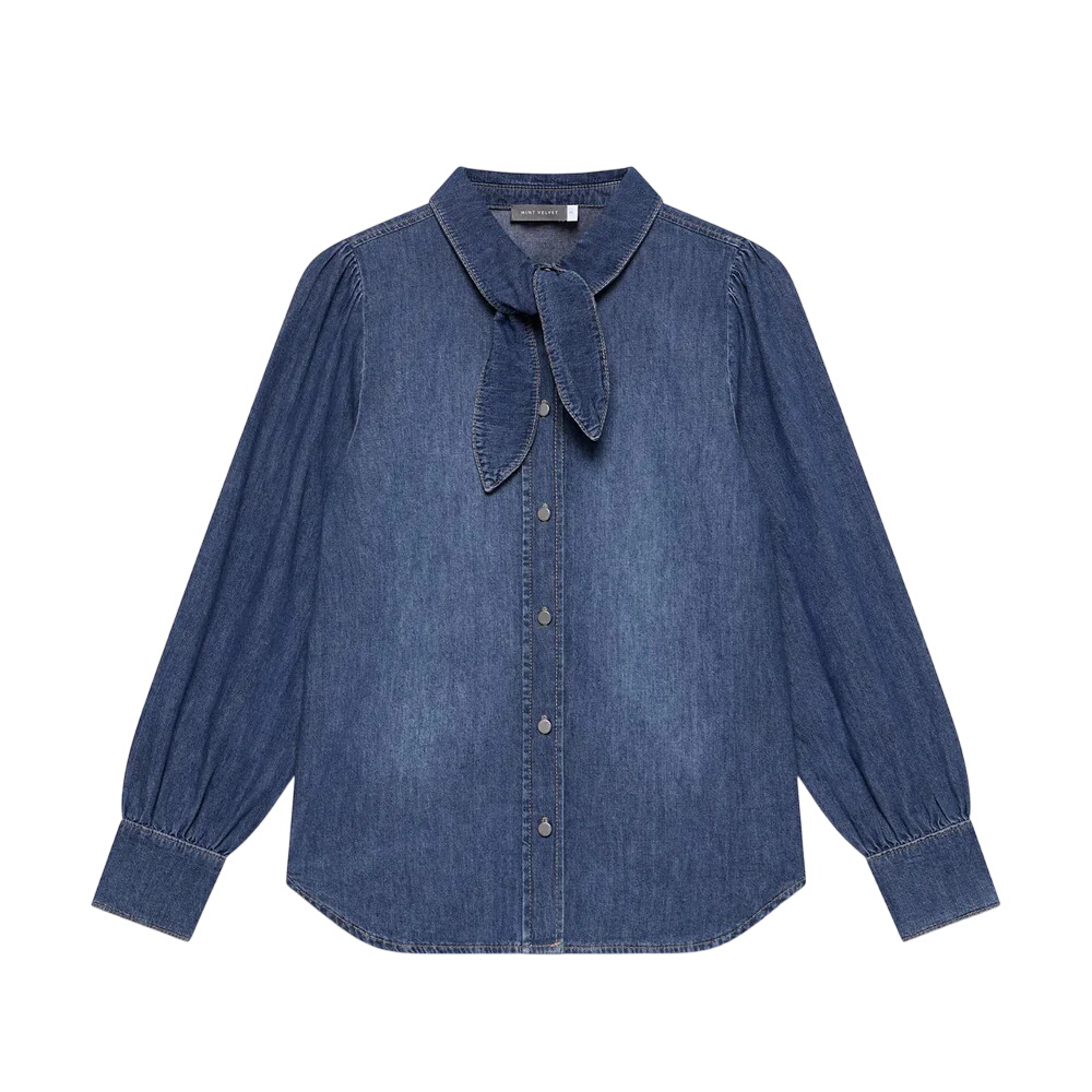 Mint Velvet Indigo Tie Neck Denim Shirt