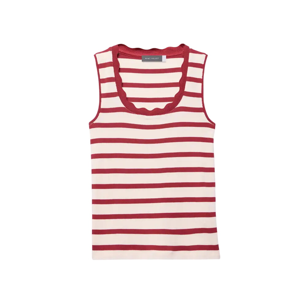 Mint Velvet Red Stripe Scallop Trim Vest