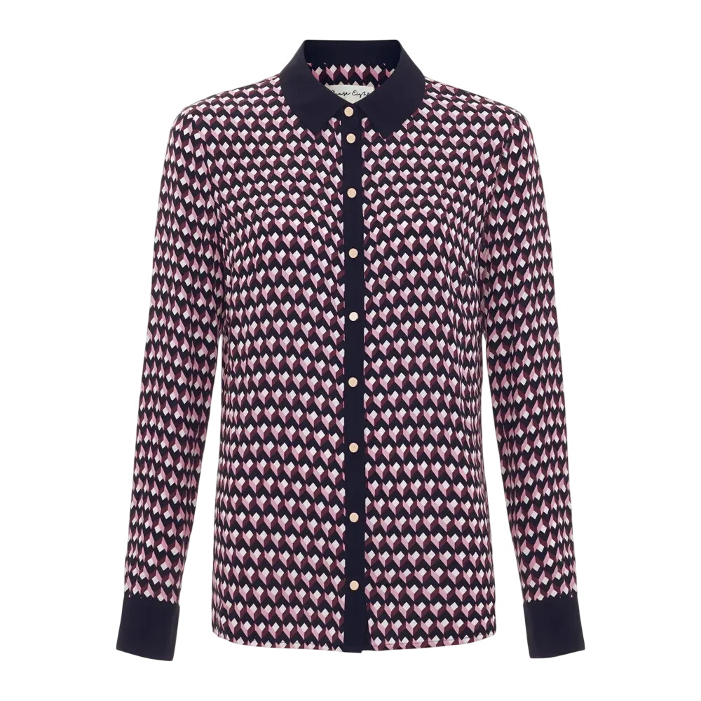 Add this elevated shirt to your new season wardrobe. The geometric print will add a subtle statement to any outfit, finished with gold buttons for a refined look/ Paired with your favourite denim it’s a sophisticated style for work and weekends alike.